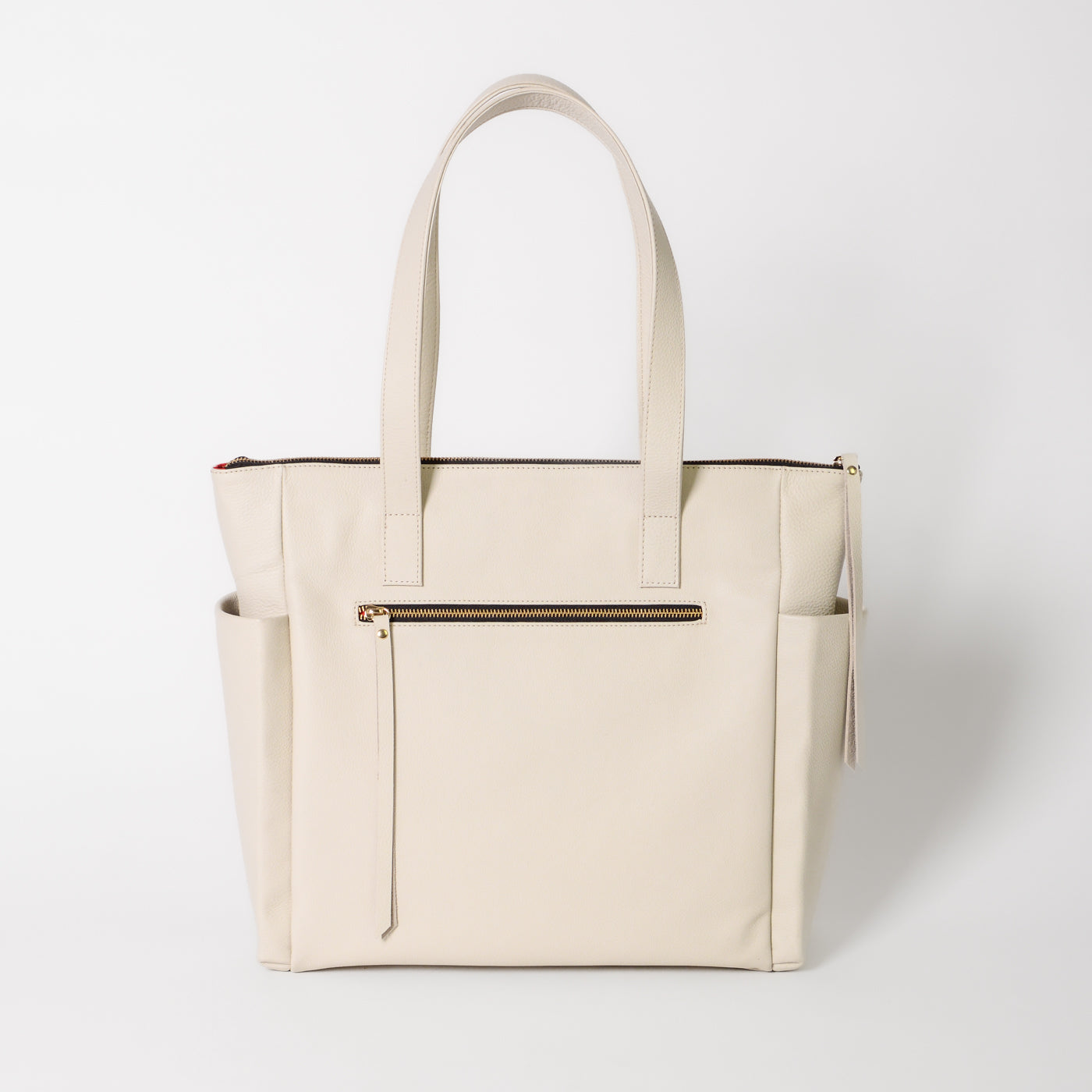 A full zipper closure adds security, while flat shoulder straps offer all-day comfort. The thoughtfully designed interior includes a zip pocket, three slip pockets, and a D-ring for your keys. Two exterior side pockets hold a water bottle or umbrella, and a discreet back zip pocket keeps essentials within reach.