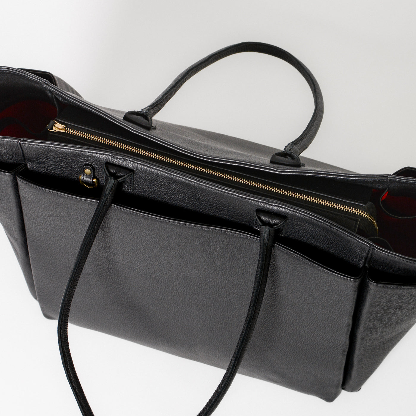 The Thea Weekender Tote by TAH, is your all-in-one travel companion—crafted for jetsetters, frequent flyers, and road trip regulars. Handcrafted from full-grain leather and finished with solid brass hardware, this spacious tote is made to carry it all: three sets of clothes, shoes, a cosmetic bag, and more. A favorite among stylists and professionals who travel light for weekend conventions, it features three exterior pockets—including a wide pass-through pocket that slides securely over your luggage handle and two side pockets for easy-access essentials. Inside, a padded laptop sleeve, zipper pocket, three small compartments, and a D-ring keep you organized. With double shoulder handles and a full zipper closure, the Weekender Tote is a refined blend of form, function, and quiet luxury.