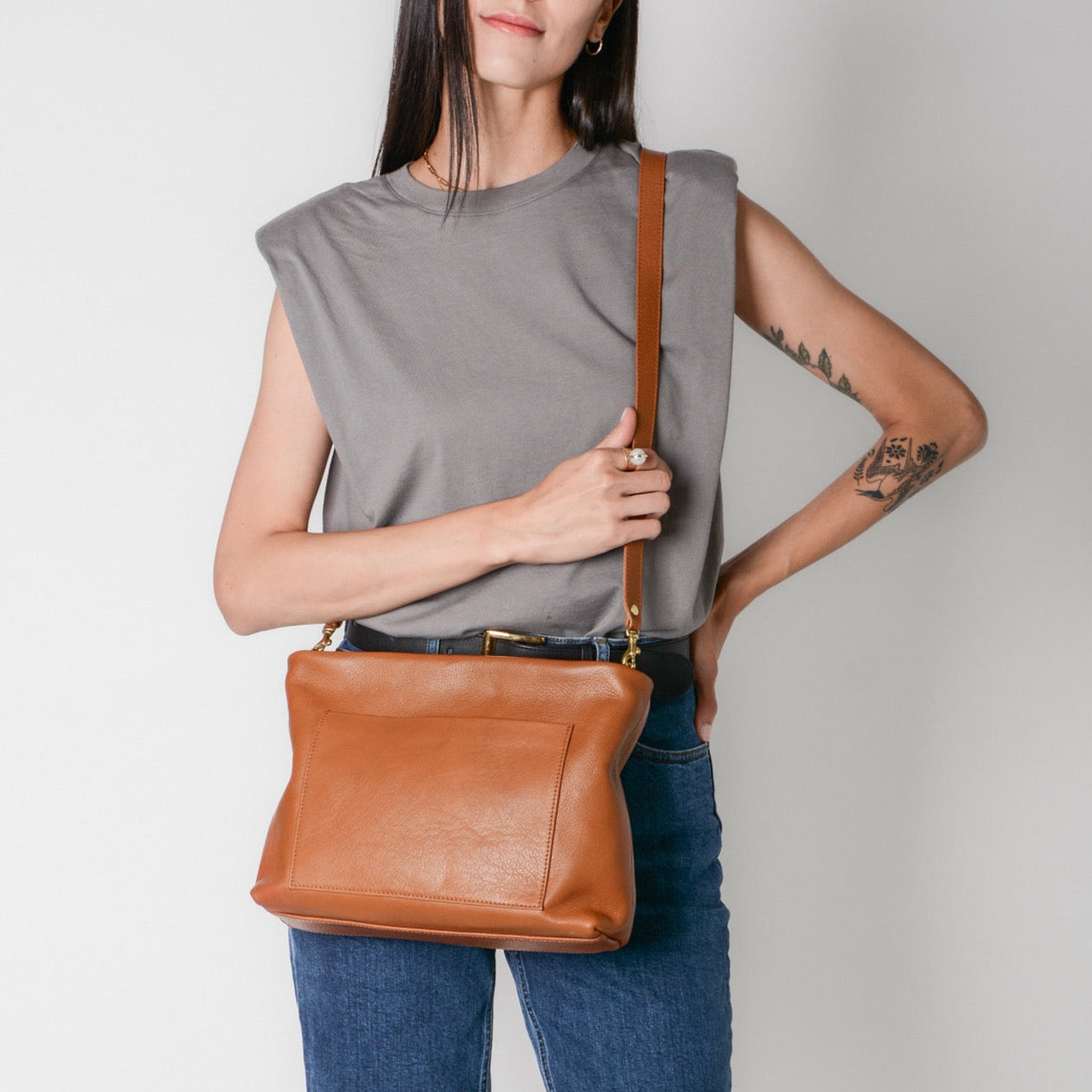 Crafted in small batches from full-grain leather and finished with solid brass hardware, Gemma blends relaxed form with refined utility.