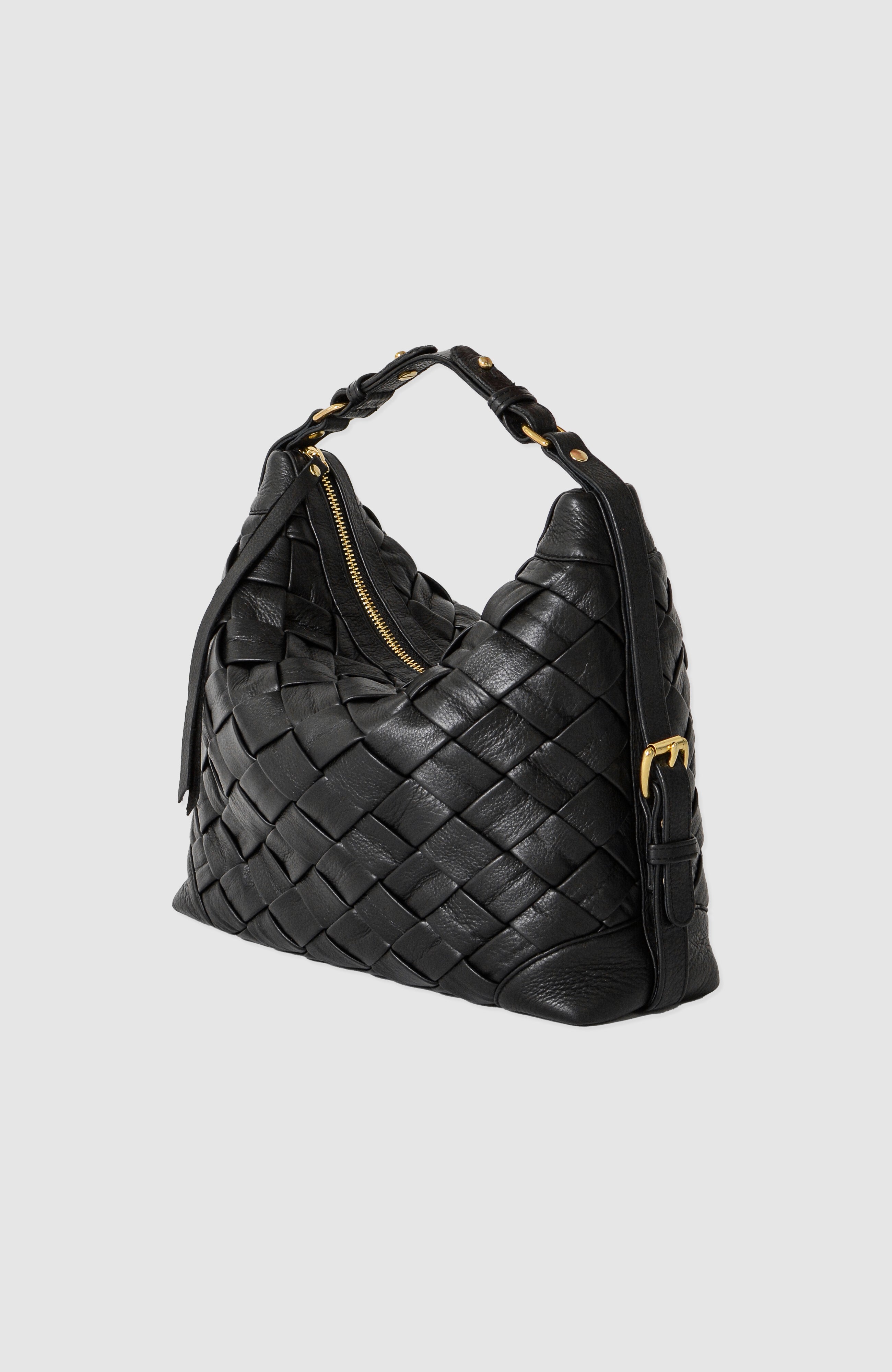 Materials: Full-grain handwoven leather, Solid Brass Hardware, Fully Lined Interior, Zipper Closure.