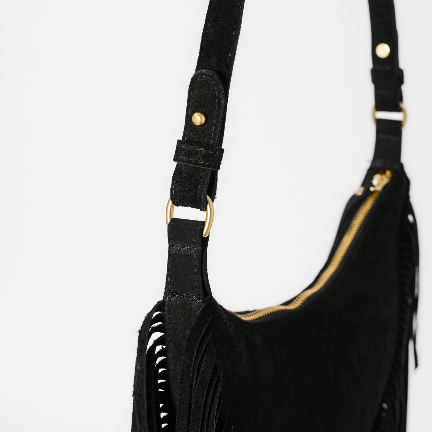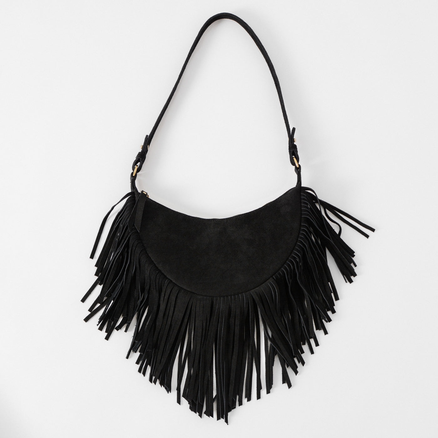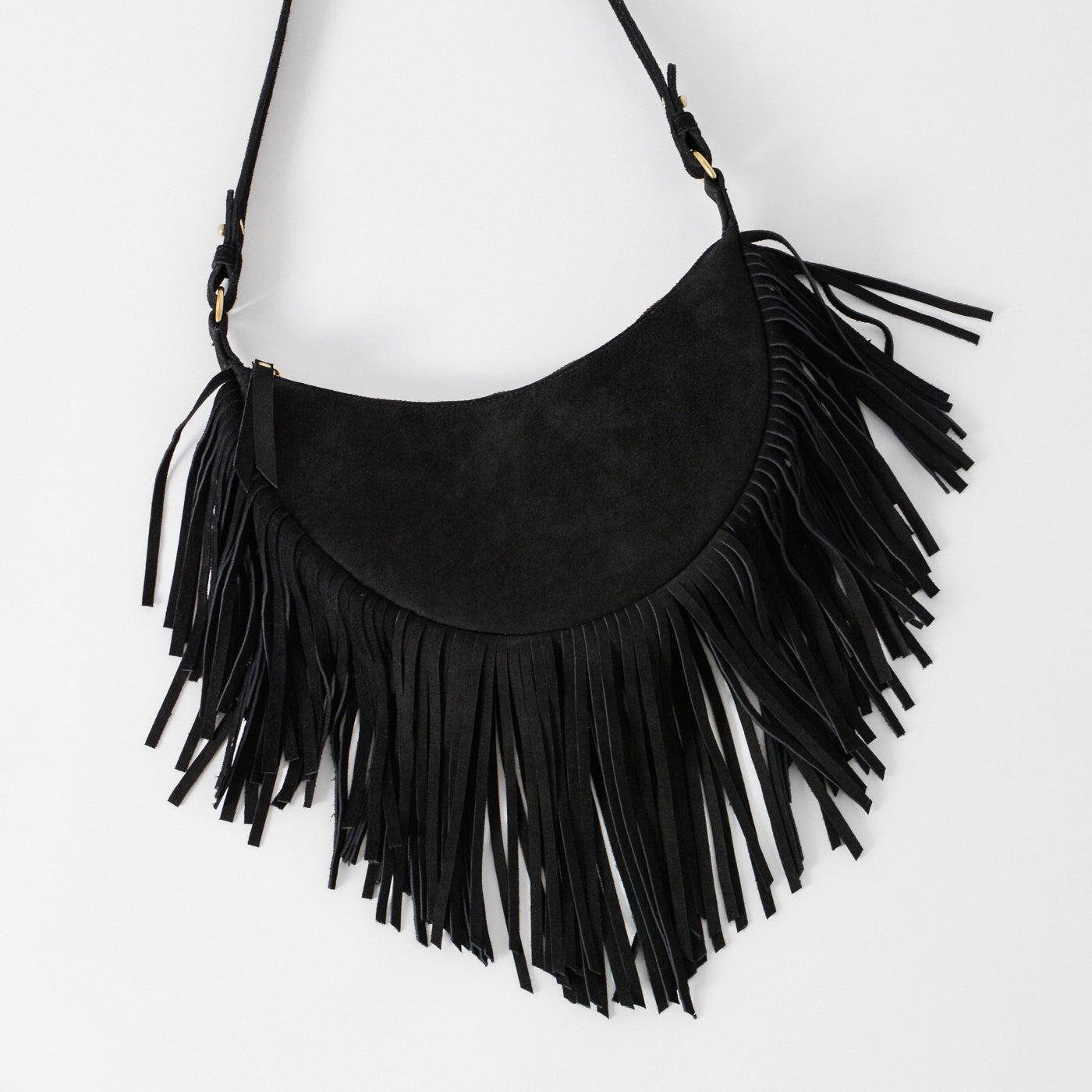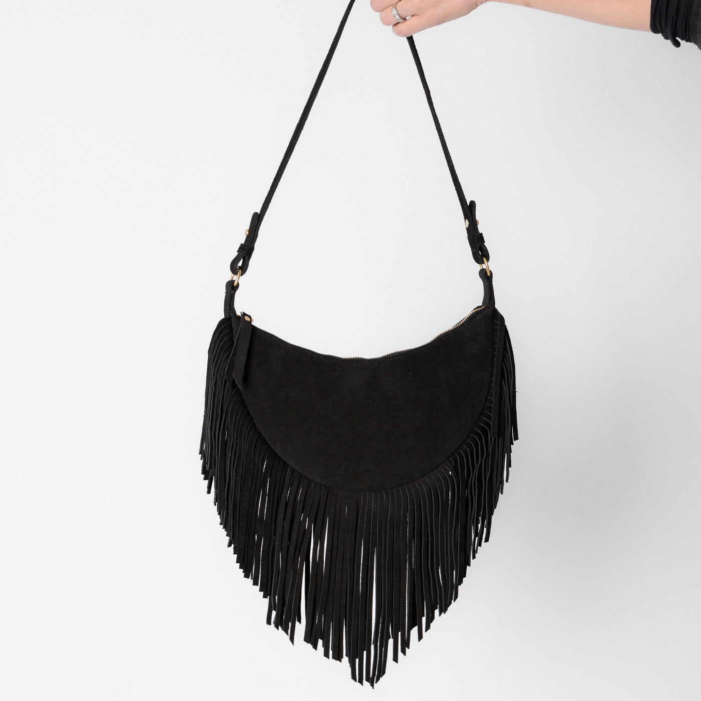 A modern nod to Western edge. This handcrafted bag reimagines our beloved Mini Crescent with hand-cut suede, bold double-layer fringe, and effortless movement. Rugged yet refined, each piece is meticulously made by skilled artisans—cut by hand, stitched with care, and designed to last for years to come.