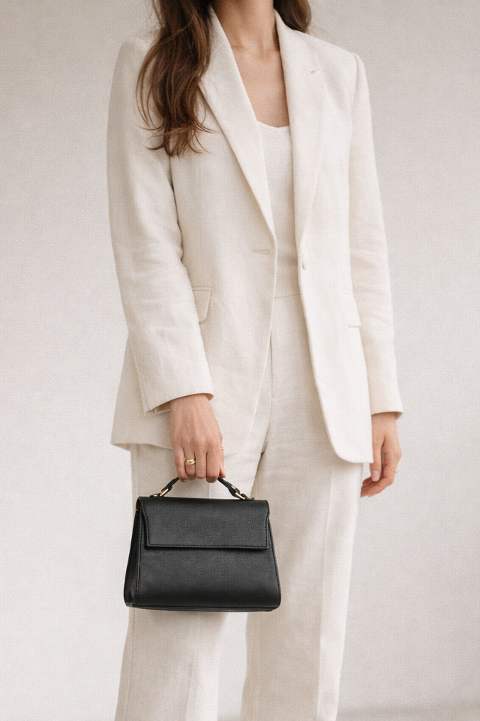 The Carrie Petite Top Handle is designed for moments that call for elegance without excess. Compact and gently structured, it embodies quiet luxury in a timeless silhouette- polished, considered, and effortlessly refined.
